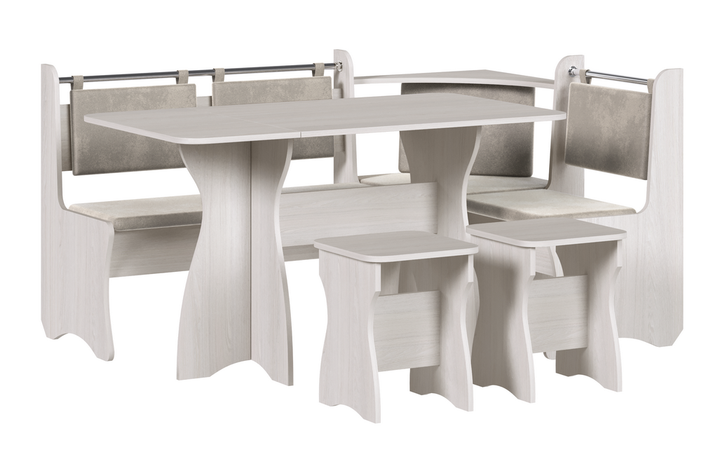 —Обеденная группа "Прима", Анкор белый,ткань Tesla13/Tesla12.(скамья, стол, табурет)