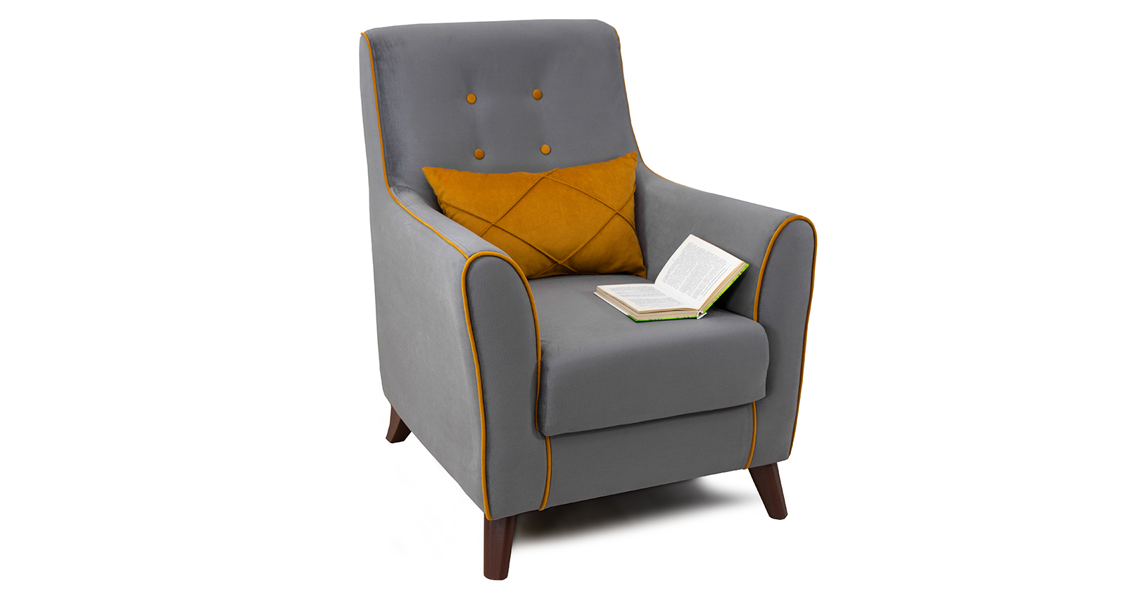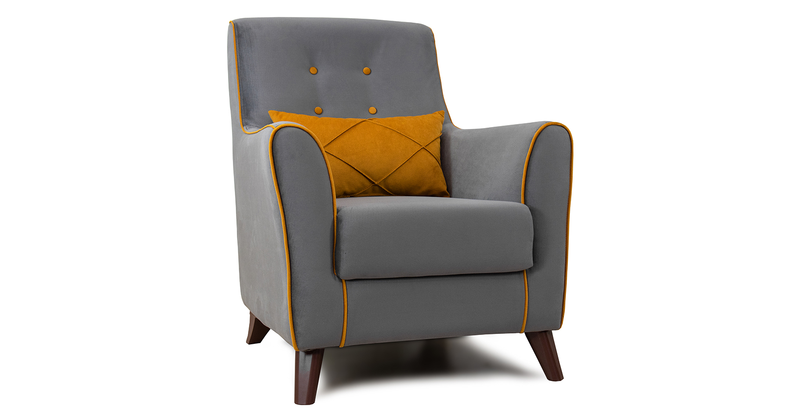 Очаровательное и элегантное кресло "Френсис" послужит настоящим украшением интерьера. Внешний вид кресла в ретро - стиле с декоративным кантом и пуговицами на спинке навевает уют и располагает к полноценному отдыху. Спинка кресла имеет легкий наклон и соединяется с удобными подлокотниками для более удобной посадки.