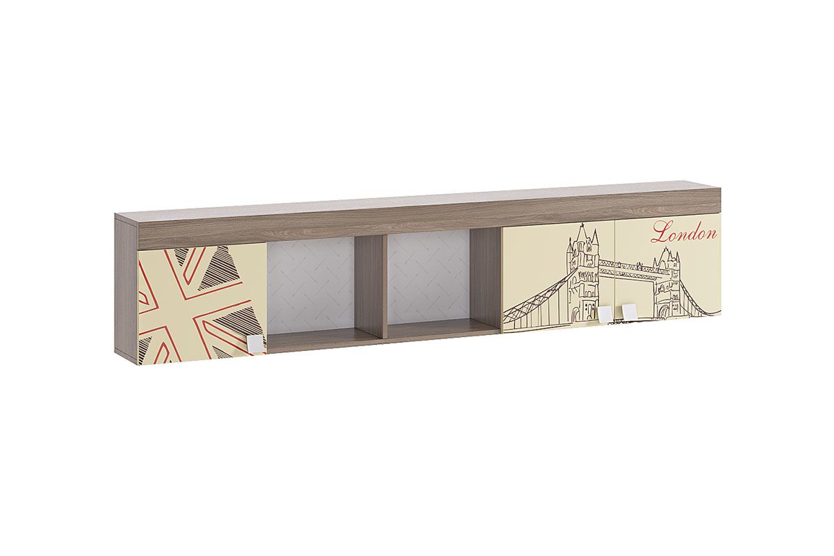 Стильная навесная полка «Челси» – мечта каждого мальчика. В закрытые шкафы и открытые ниши поместятся все учебники книги и сувениры. Эффектный принтерный рисунок на фасадах выдержан в общем стилистическом решении. Рисунок устойчив к истиранию и ультрафиолету. Детская «Челси»- все, что нужно для истинного джентльмена!