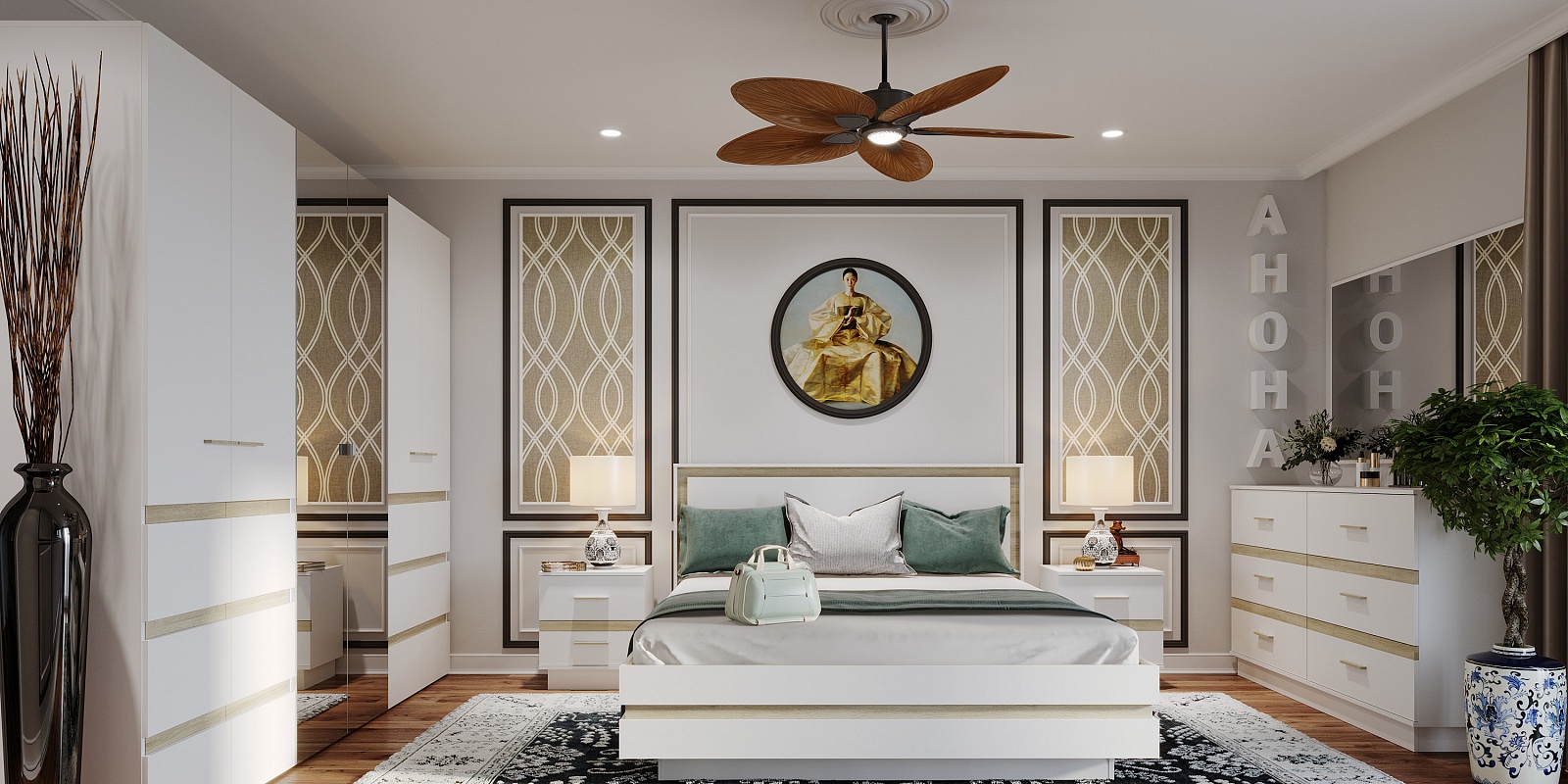 ✓ Компактные габариты – узкая белая конструкция с древесными вставками органично впишется даже в небольшую спальню, экономя пространство.