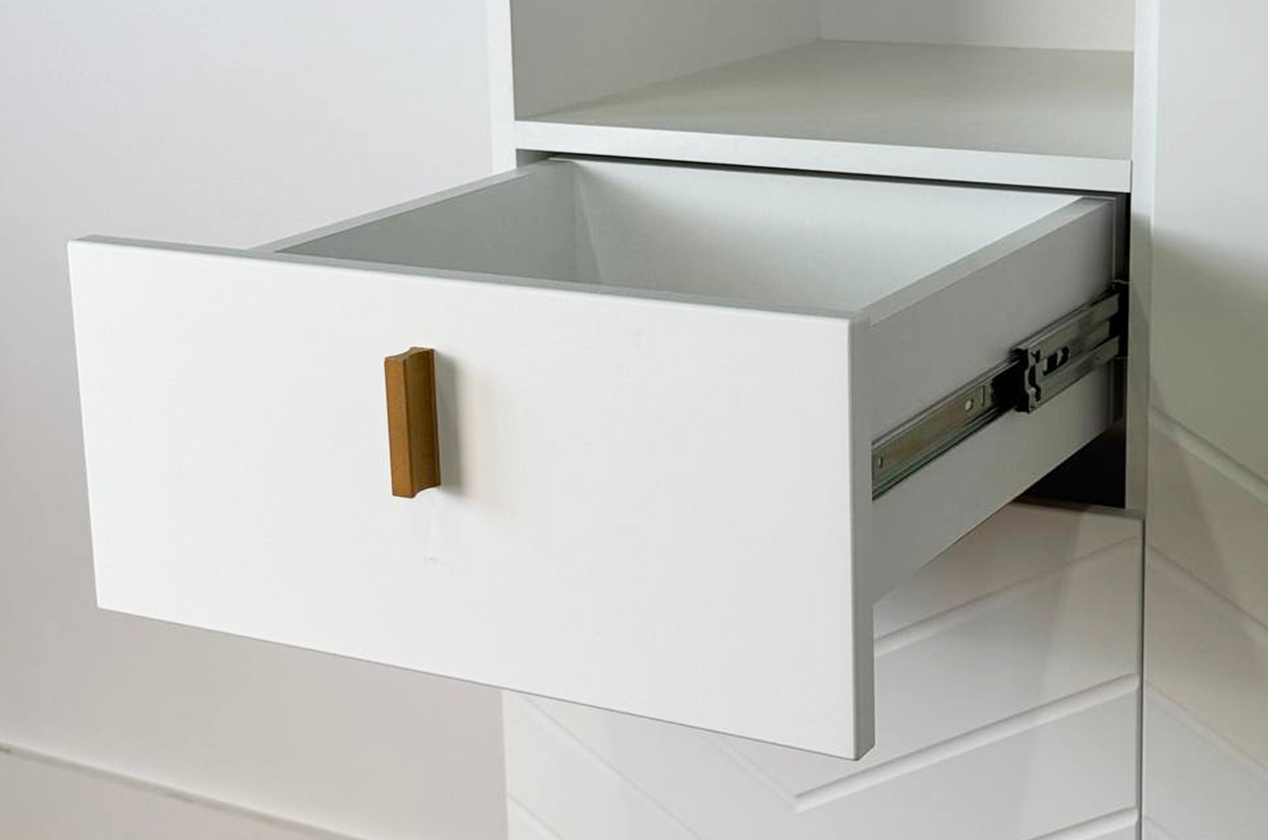 Фасады: МДФ с матовой плёнкой ПВХ и фрезеровкой.