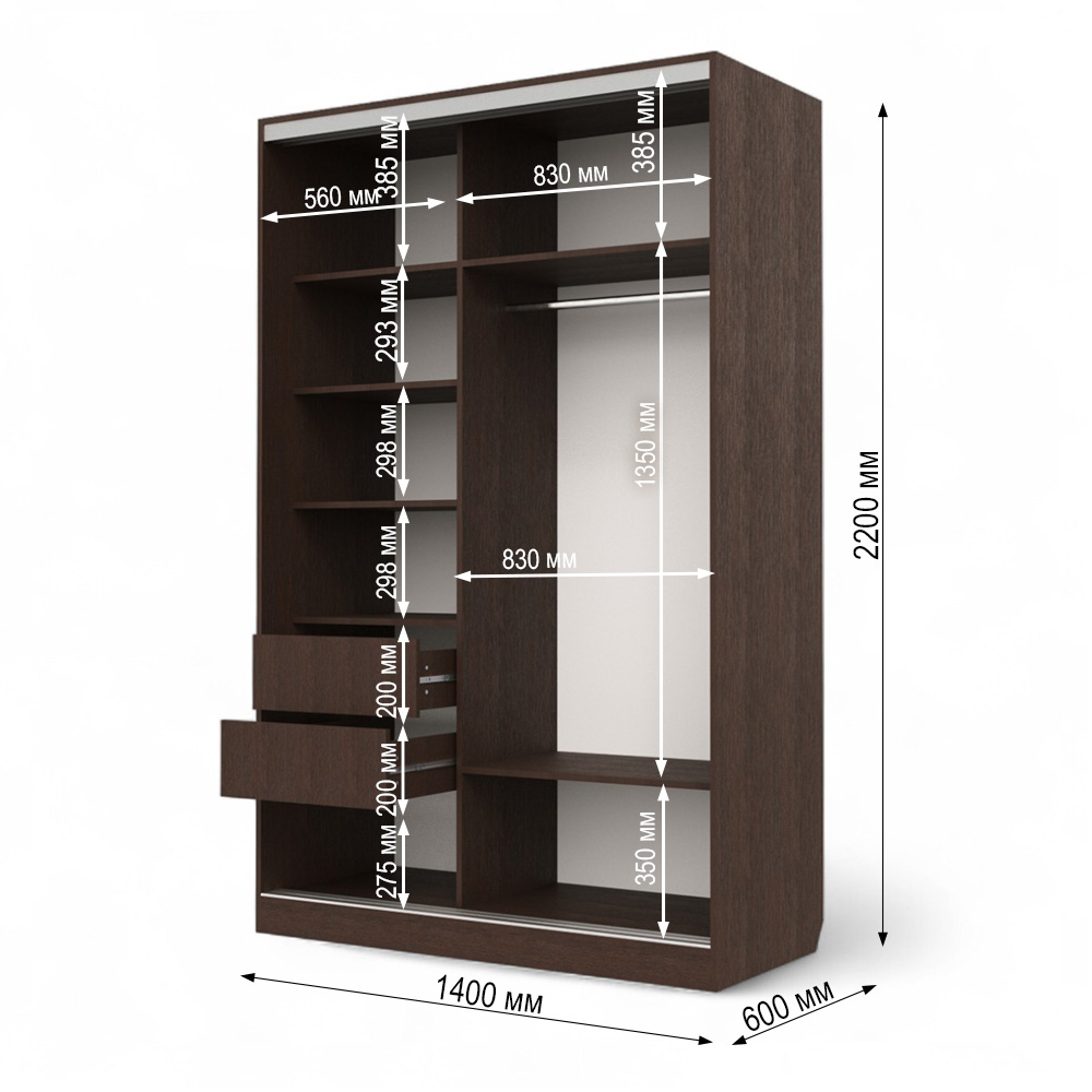 Внутри вас ждут два удобных выдвижных ящика и вместительная штанга для одежды.