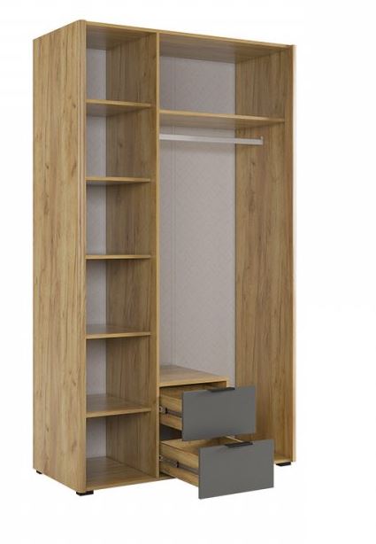 Максимально вместителен. Имеет штангу для одежды, выдвижные ящики и полки. Удобен для хранения вещей в гостиной, и в спальне и в детской комнате.