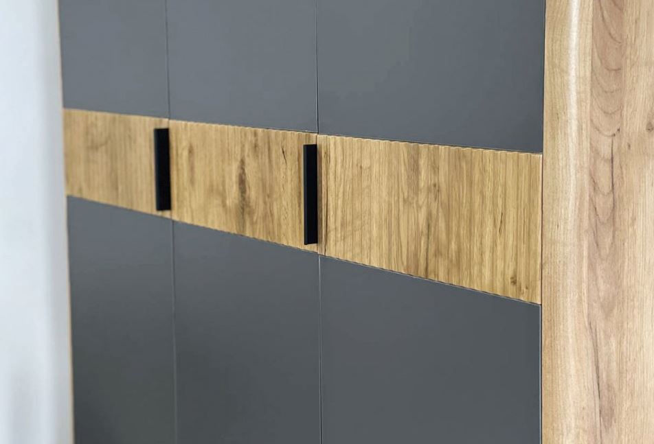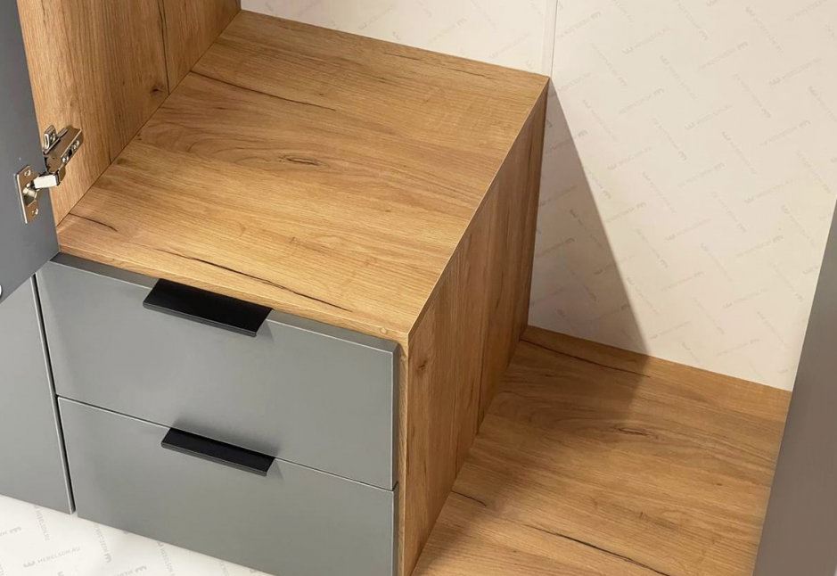 Фасады выполнены в графитовом цвете с украшением в виде декоративного элемента с фрезеровкой "вельвет".