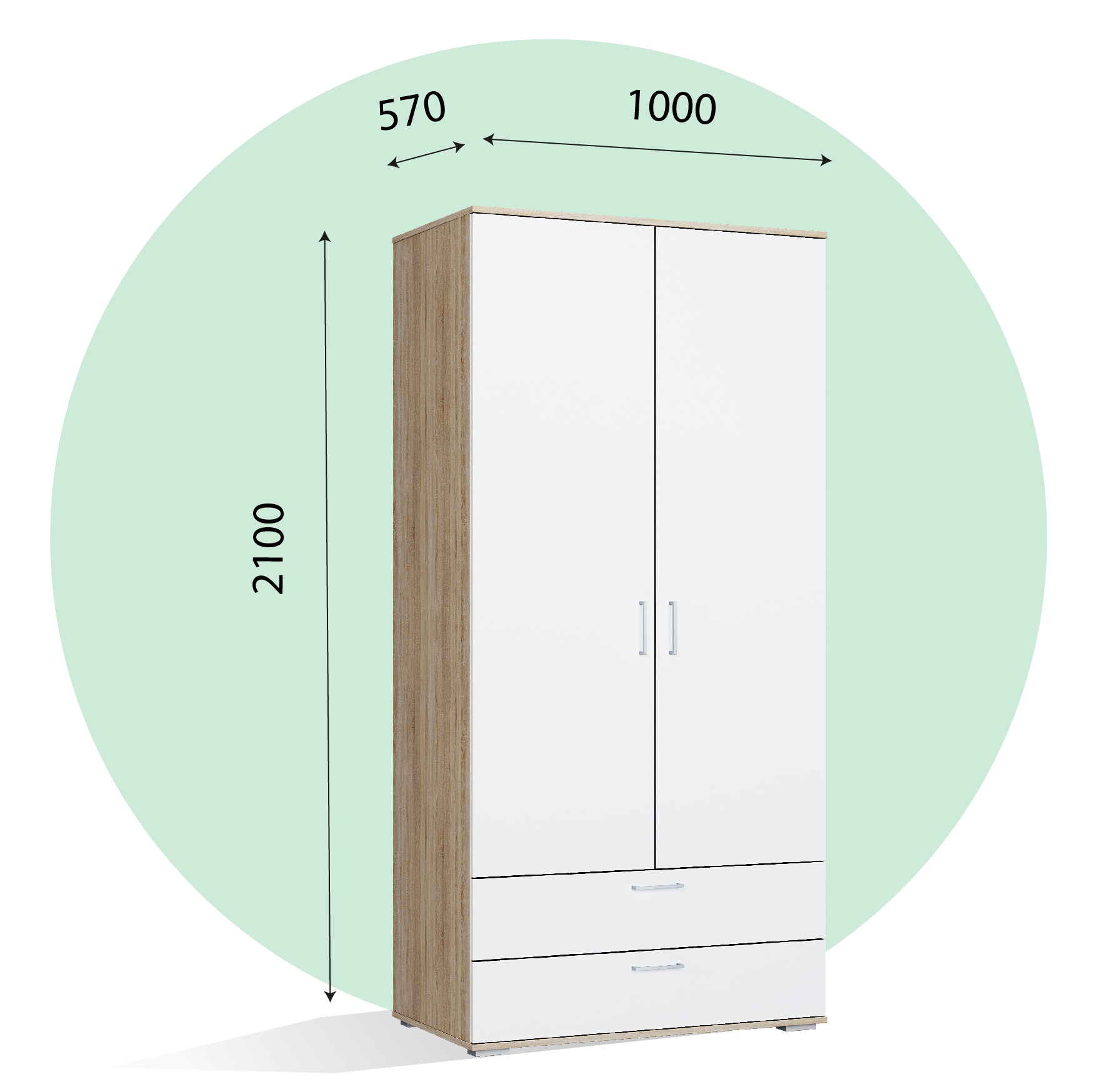 Шкаф ШР 2/1 с ящиками  Лайт белый/корпус дуб сонома