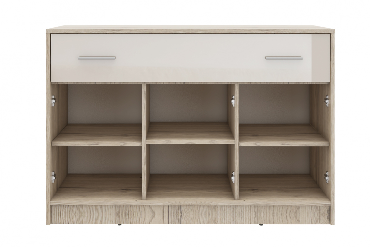 Комод состоит из одного ящика и трех полок.