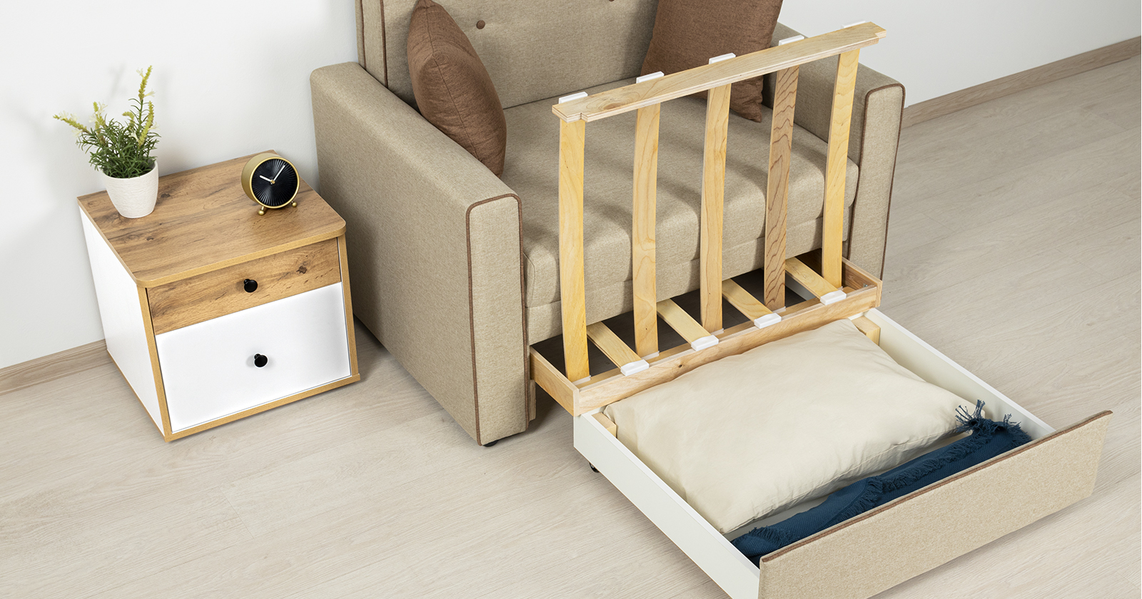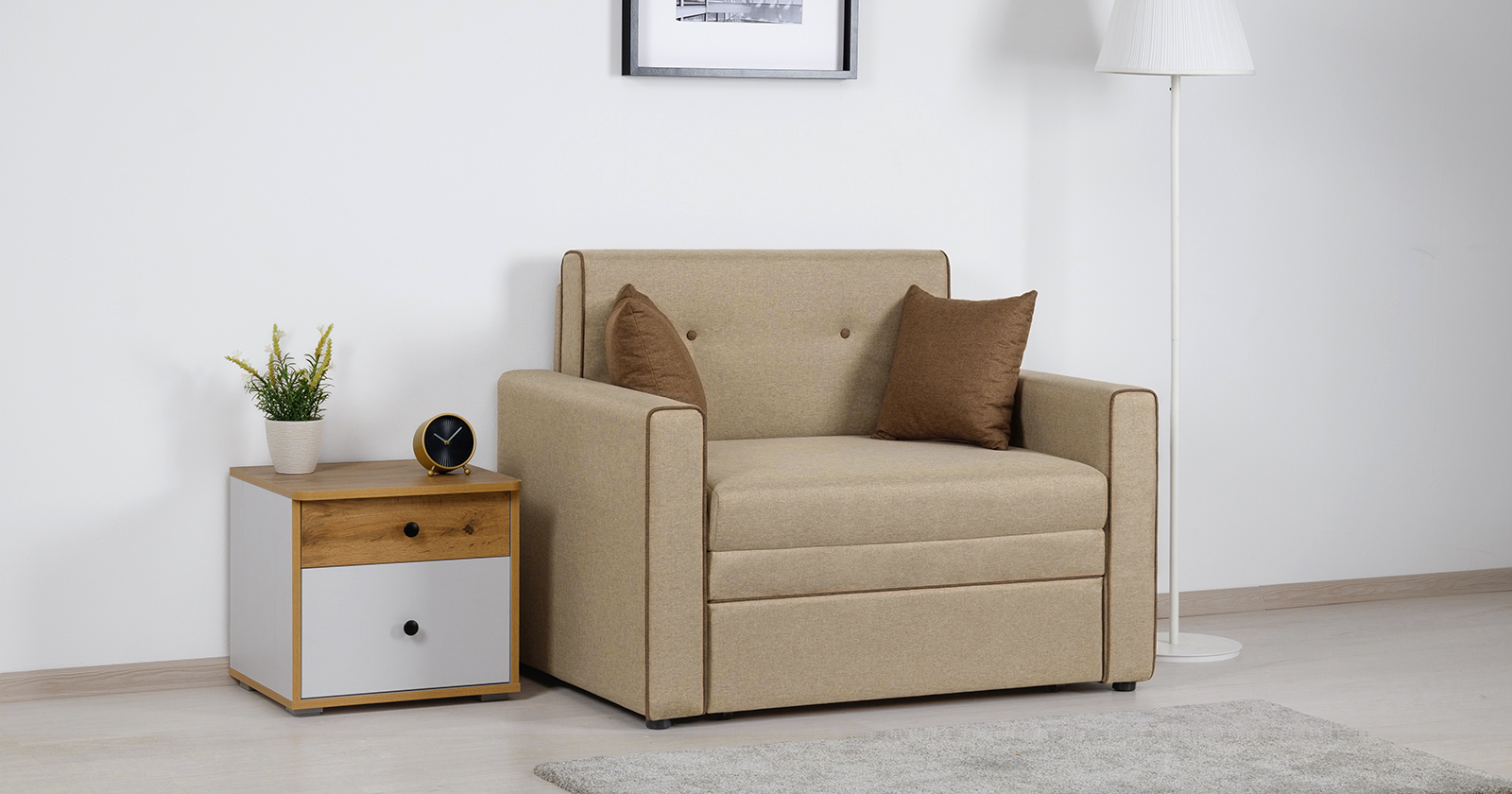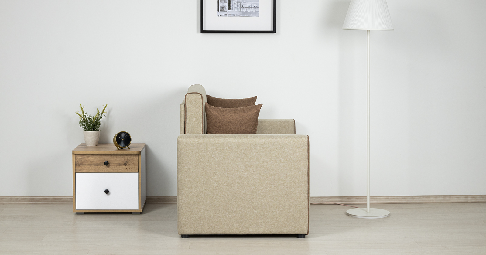 Диван-кровать Найс - компактное современное решение для гостиных, квартир-студий, детских и подростковых комнат. Может использоваться в качестве постоянного спального места для детей и подростков или гостевого спального места взрослого.