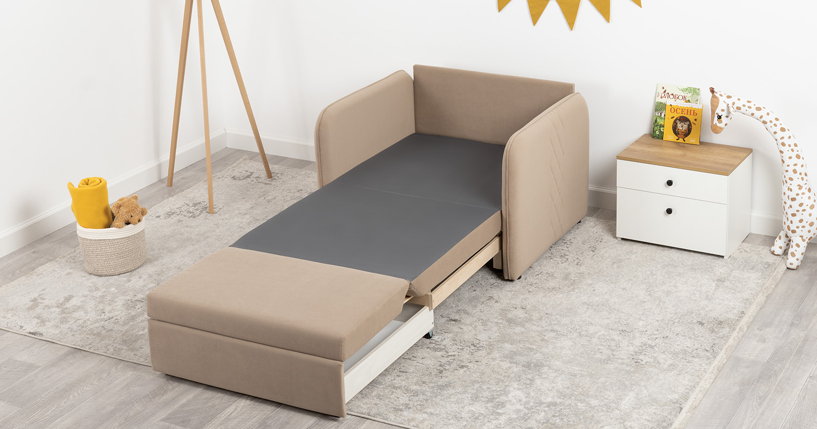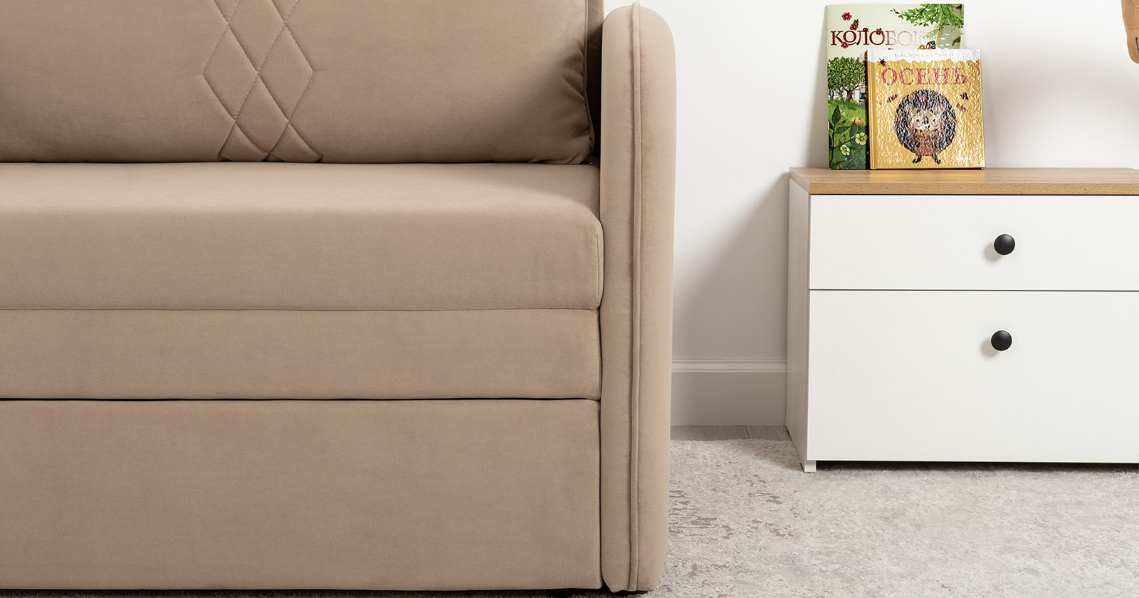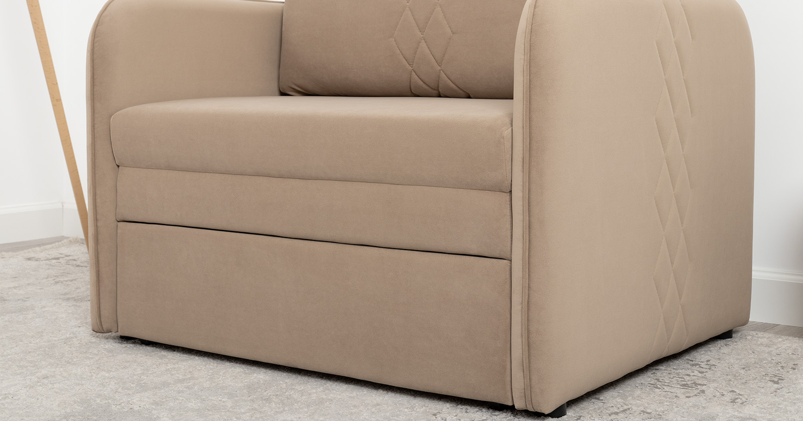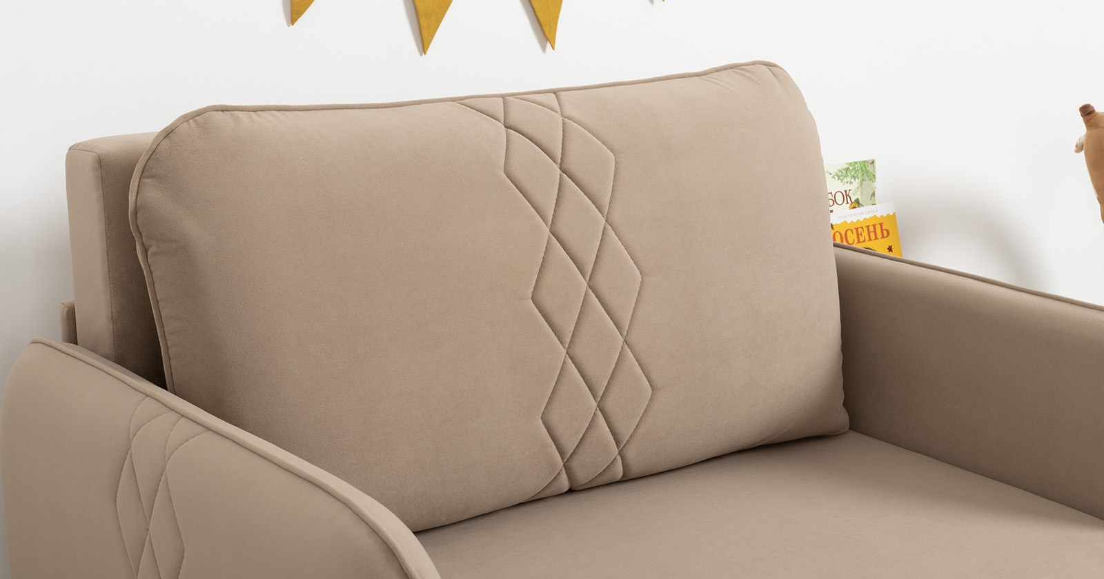 Компактный диван "Вивальди" – стильное решение для детской или гостиной. Этот диван, несмотря на свои скромные габариты, легко превращается в удобное спальное место для детей и подростков. Лаконичный дизайн с декоративной стежкой подчеркивает роскошную фактуру велюра, а компактные размеры позволяют разместить его даже в небольшом пространстве.