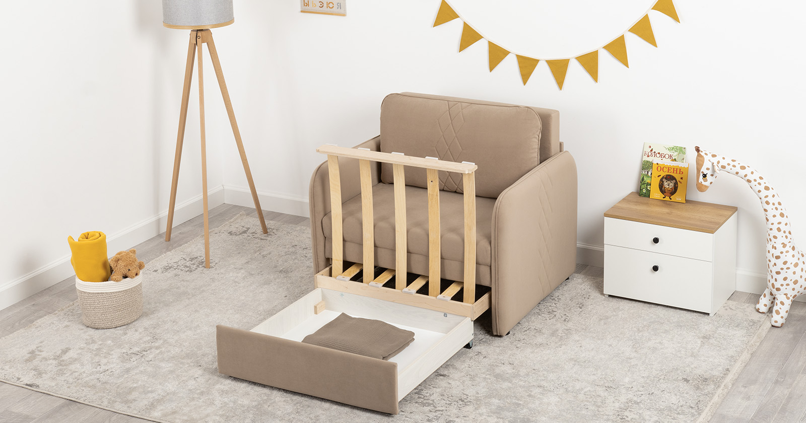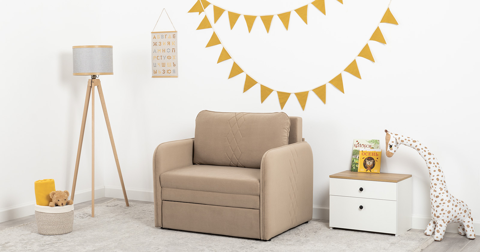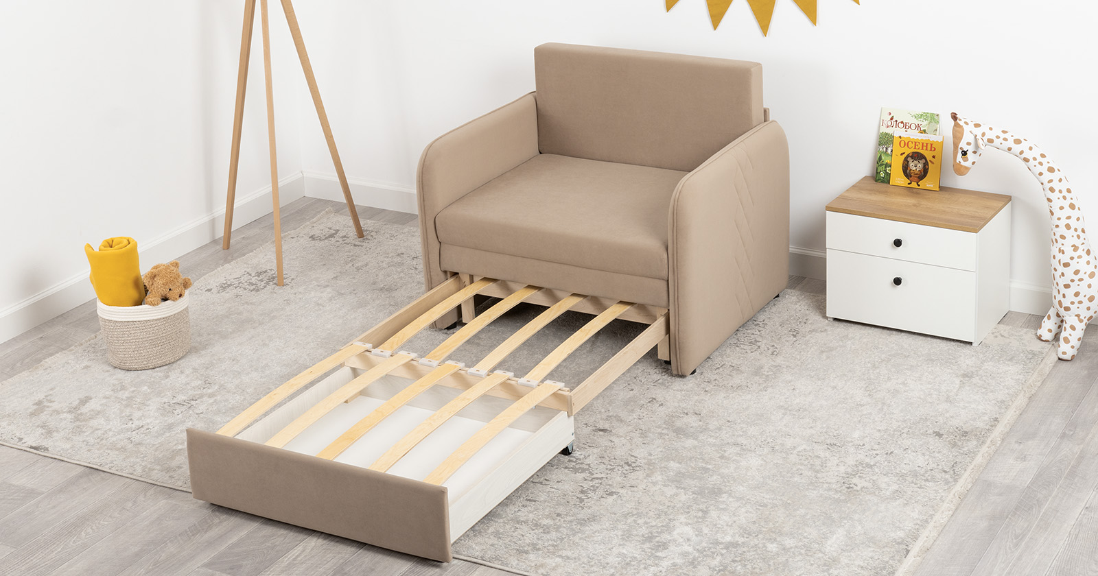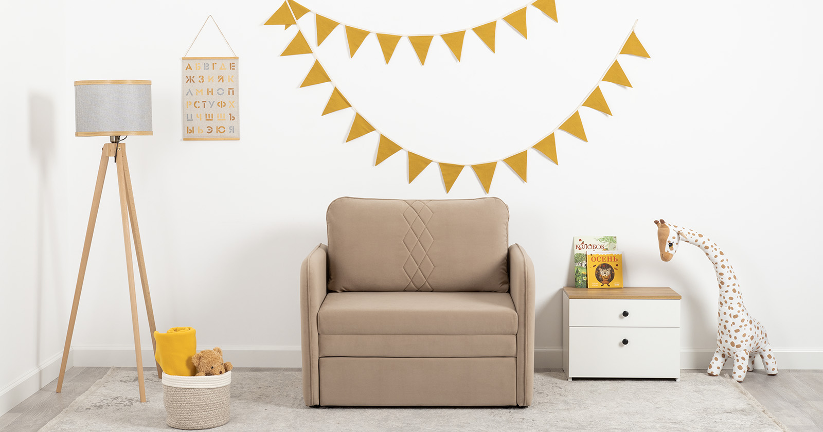 Компактный диван "Вивальди" – стильное решение для детской или гостиной. Этот диван, несмотря на свои скромные габариты, легко превращается в удобное спальное место для детей и подростков. Лаконичный дизайн с декоративной стежкой подчеркивает роскошную фактуру велюра, а компактные размеры позволяют разместить его даже в небольшом пространстве.