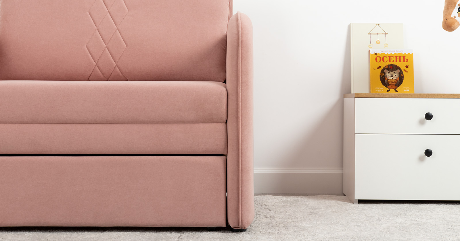 Компактный диван "Вивальди" – стильное решение для детской или гостиной. Этот диван, несмотря на свои скромные габариты, легко превращается в удобное спальное место для детей и подростков. Лаконичный дизайн с декоративной стежкой подчеркивает роскошную фактуру велюра, а компактные размеры позволяют разместить его даже в небольшом пространстве.