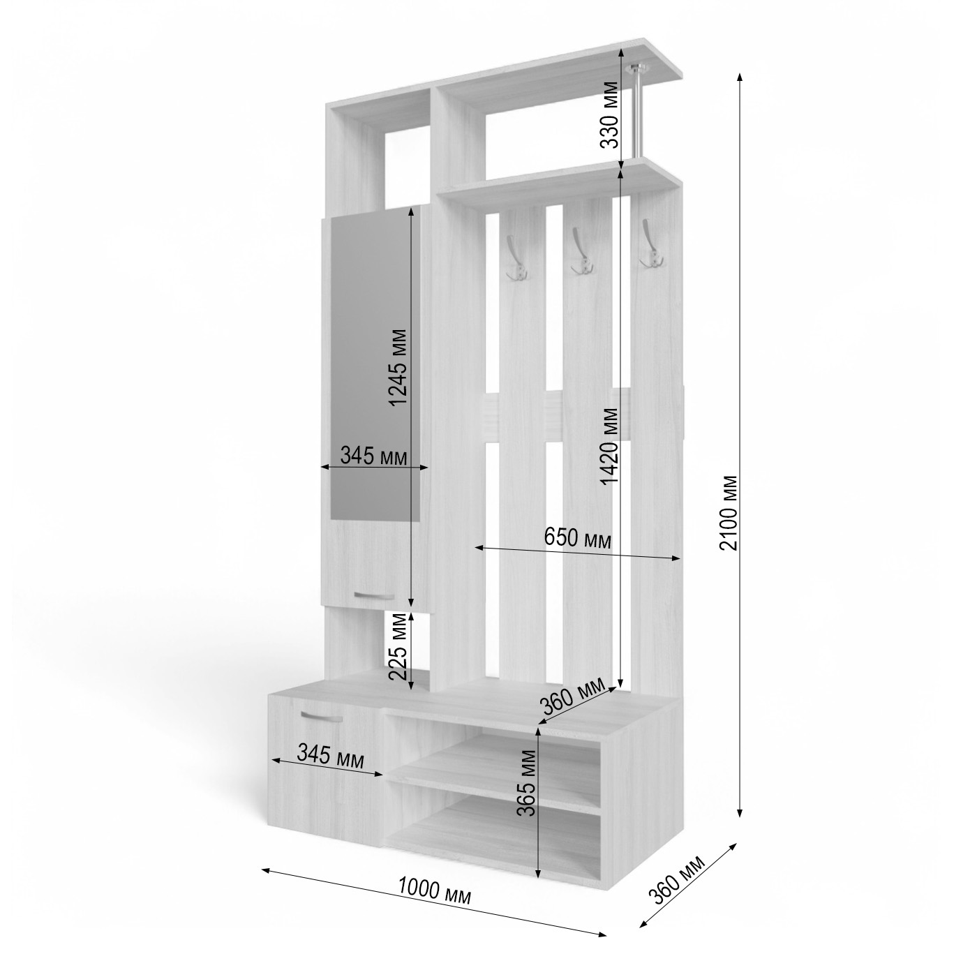 Организуйте пространство у входа с помощью практичной прихожей "БН-208". Модель предлагает полный набор для хранения, сочетая закрытые и открытые решения.